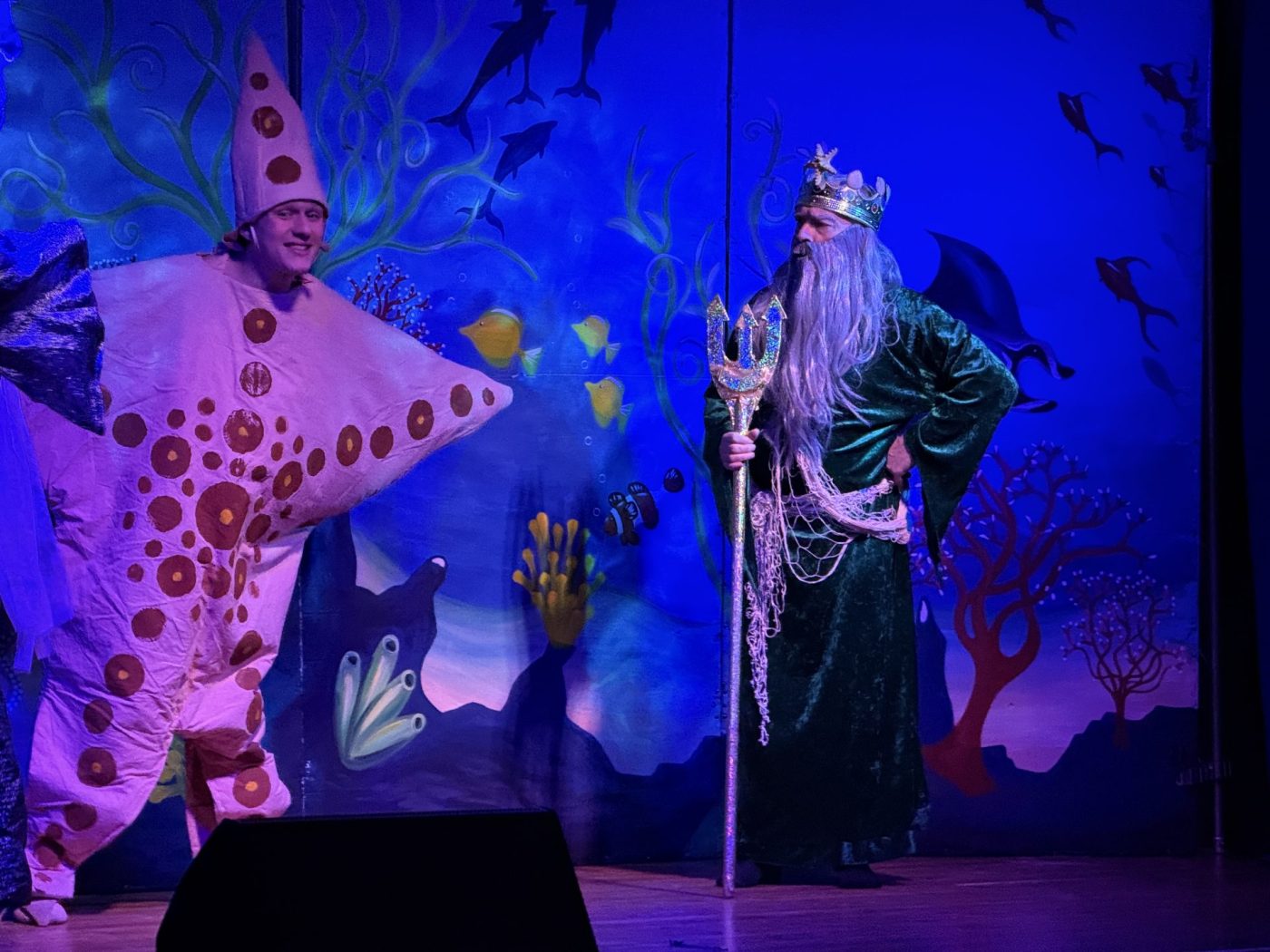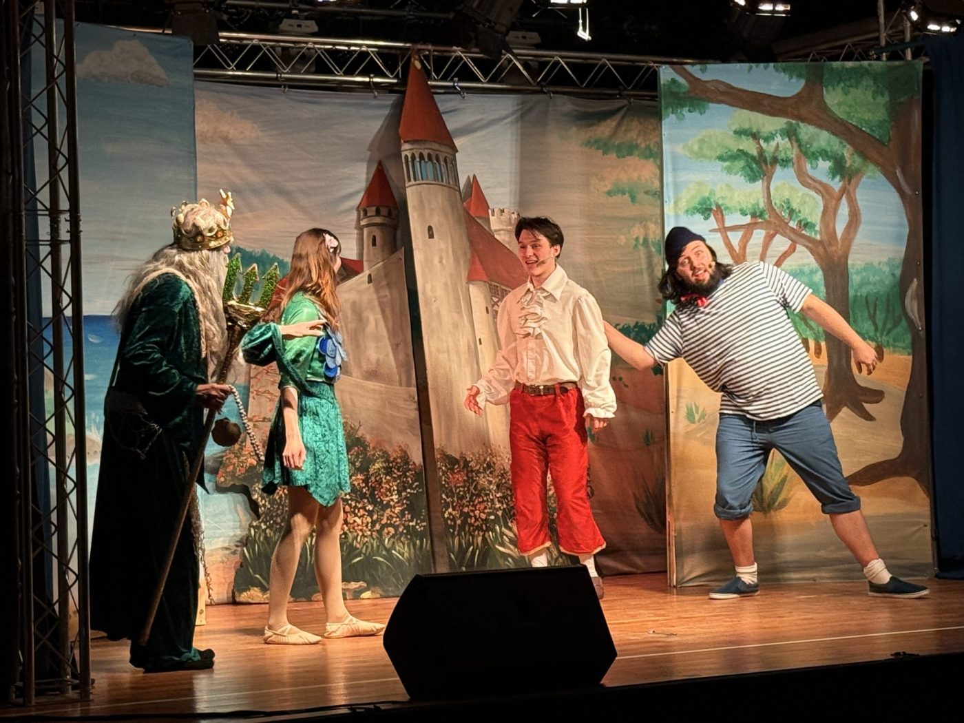 Wir waren am Dienstag mit der ganzen Grundschule in einem Theater vom Tremser Teich. Sie sind zu uns in die Schule gekommen. Das Märchen hieß die kleine Meerjungfrau. Mitgespielt haben der Steuermann, sein Freund (Prinz), Perla die kleine Meerjungfrau , Vaseline Warze und der König des Meeres. Es war sehr spannend, da der Prinz und die Meerjungfrau sich geküsst haben. Aber leider war es kein echter Kuss.